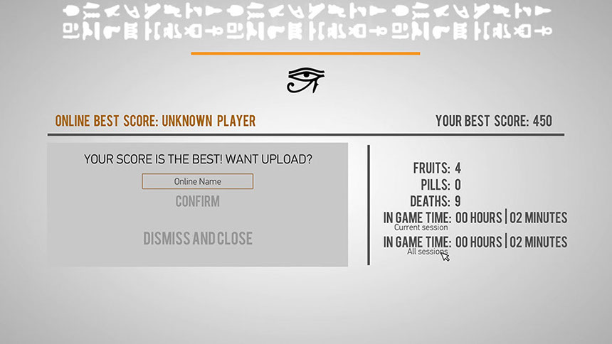 The game calculates the best time of levels, the number of deaths, eaten fruits and pills, the total playing time and everything is taken into account.